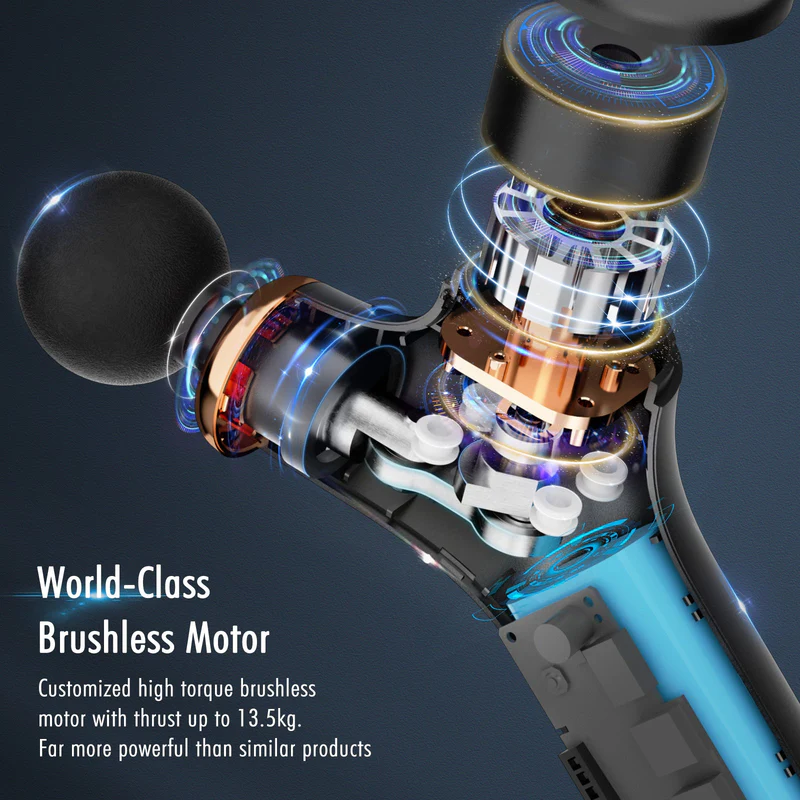 Equipped with a brushless motor and 7mm amplitude, it delivers up to 3200 percussions per minute, helping to relieve muscle soreness, promote blood circulation, and relax tension quickly.
